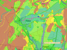 Tato mapová kompozice zobrazuje prostorové vyjádření dílčích statistik přímého povrchového odtoku na úrovni povodí IV. řádu s identifikací odtokových linií s minimální přispívající plochou povodí 5ha a rozložení hodnot CN II pro malá povodí do 10 km2 před aplikací návrhů opatření.